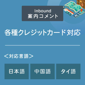 海外からお越しの旅行者のみなさまへ、お会計は各種クレジットカード及び銀聯カードもご利用いただけます旨のコメントをお届けします。日本語、中国語、タイ語に対応していますので、外国人観光客の多いお店でのご案内としてご利用いただけます。